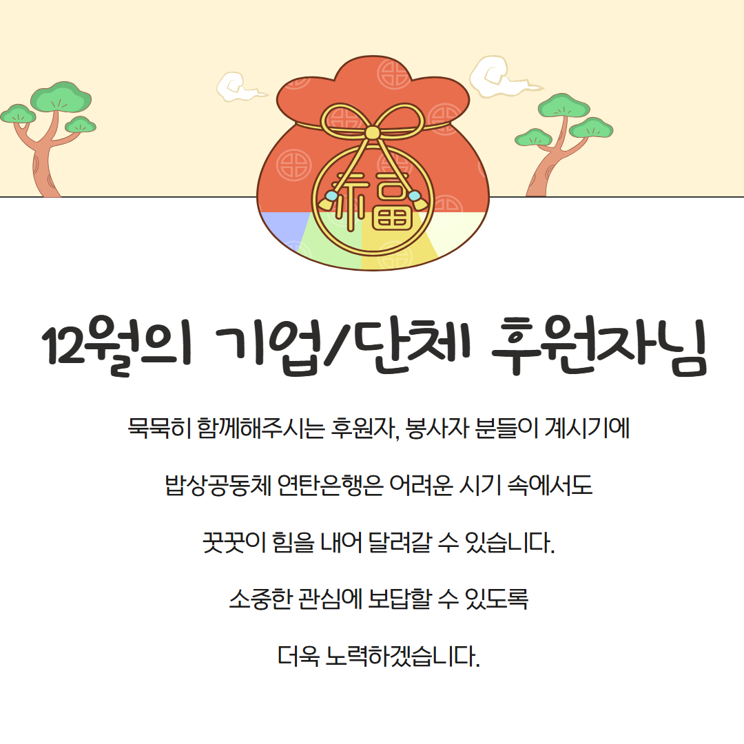 [기업/단체] 12월1일~12월31일 소중한 마음으로 함께하여 주신 후원자님입니다.