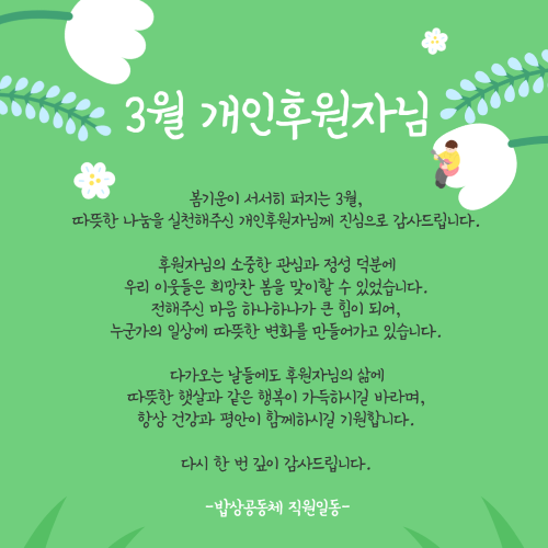 삼성화재홍석형 이서연(강찬) 이지민+정준우 익명(후원금) 정우빈.정우진 탁혜경(천사)