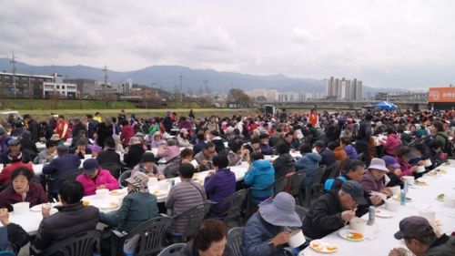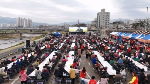 밥상공동체복지재단 창립 28주년 기념 나눔행사가 6일 원주천 둔치에서 열렸다.