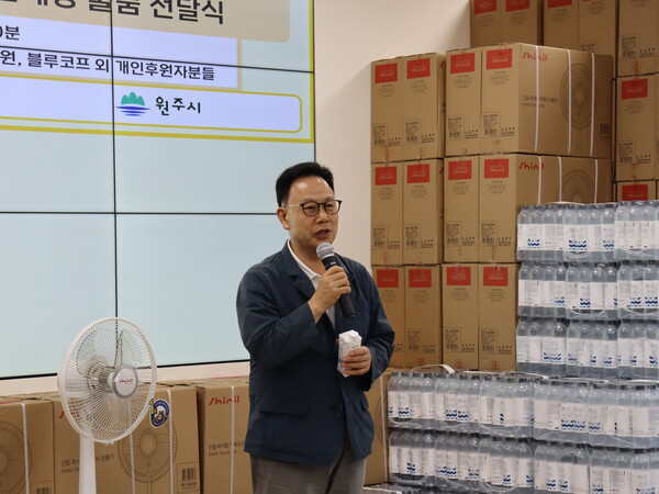 이날 재단은 원강수 원주시장을 비롯한 관계자들이 참석한 가운데 개회식과 기증식을 열고, 원주시 거주 취약계층 500가구에 선풍기 500대와 생수 총 1만 병을 전달했다.