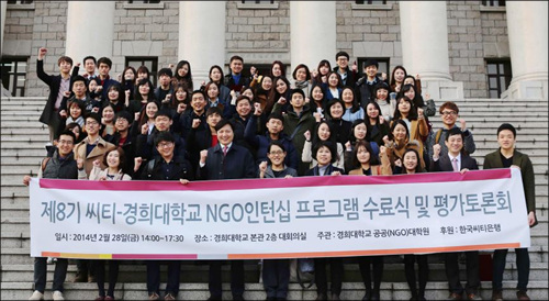 한국씨티은행(은행장 하영구)은 경희대학교와 함께 시민사회 발전과 건강한 시민사회 리더양성을 위해 8년째 진행하고 있는 NGO인턴십 프로그램의 수료식과 평가토론회를 지난달 28일 개최했다고 2일 밝혔다.