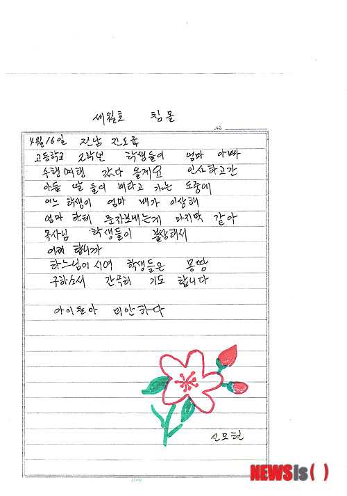 이들은 "목사님 학생들이 불쌍해서 어찌합니까. 하느님이시여 학생들을 구하소서 간곡히 기도합니다. 아이들아 미안하다"라며 직접 쓴 손편지를 전달하기도 했다.