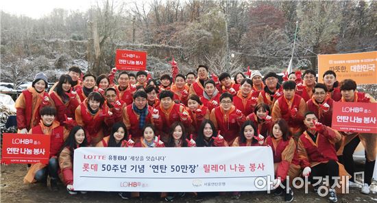 를 비롯한 임직원 50여명이 참석했다. 이들은 추운 날씨에도 연탄 2000장을 각 가구에 전달했다.