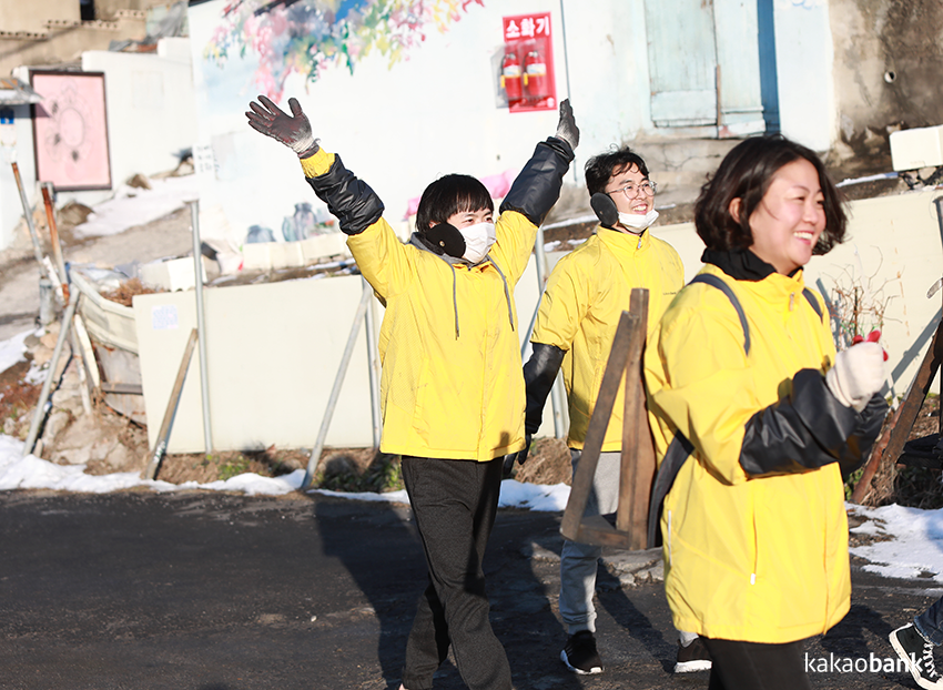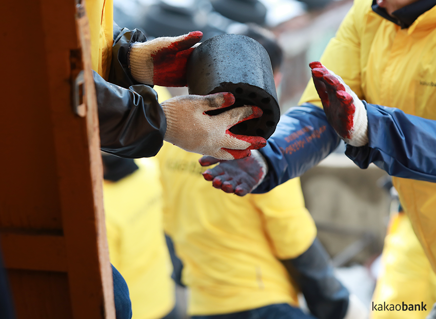 카카오뱅크 직원들과 함께 마을 곳곳에 연탄을 배달해 주셨어요.