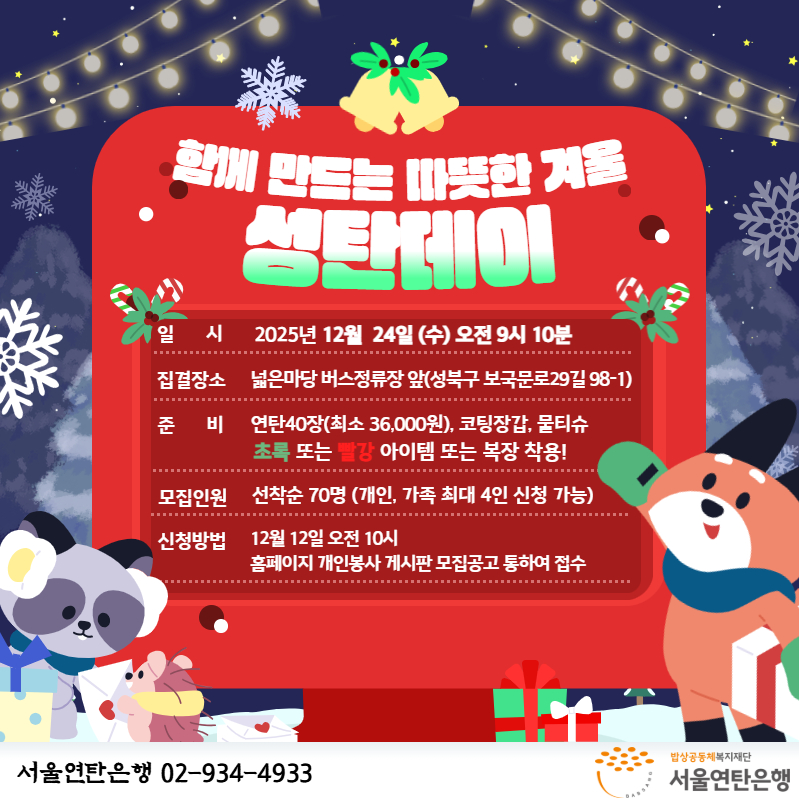 [봉사자 모집] 2025년 12월 24일 성탄데이