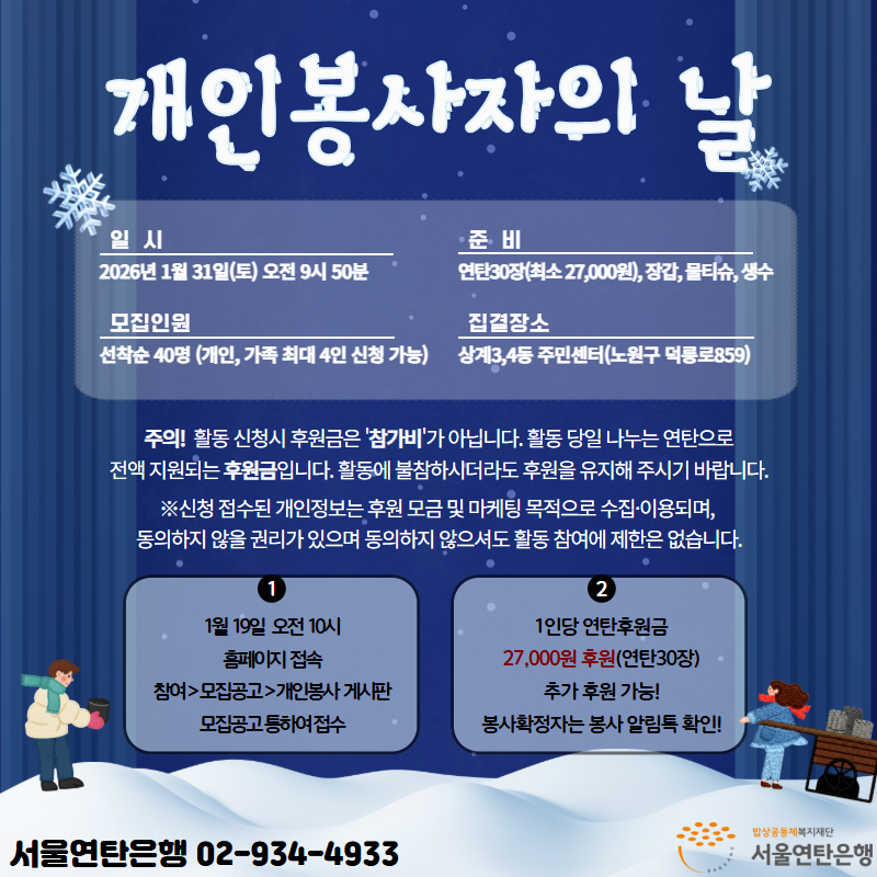 [봉사자 모집] 2026년 1월 31일 개인봉사자의 날