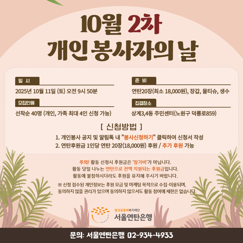 [봉사자 모집] 2025년 10월 11일 2차 개인봉사자의 날